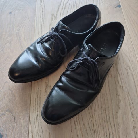 Pent brukte mørkebrune dressko fra Japan selges da de ikke passer lenger.
