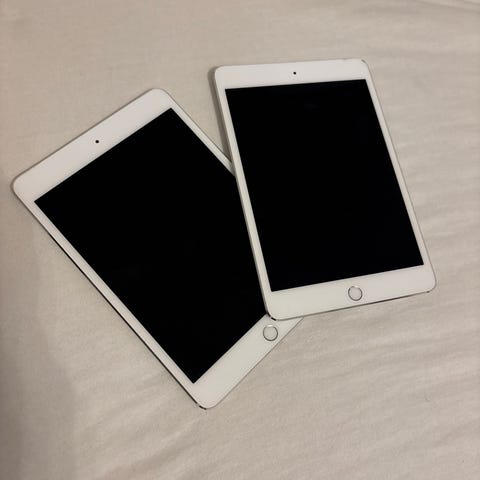 Apple iPad mini Wifi+Cellular nettbrett med 64 GB lagringskapasitet og nytt batteri i høsten 2024. En kompakt modell som egner seg for bruk til nettlesing, strømming av video, sosiale medier, enkle spill og apper. Leveres med original eske, ladekabel og strømadapter slik det fremgår av bildene. Skjermen viser standard iPadOS-grensesnitt med ulike installerte apper. Ytterligere detaljer om modellgenerasjon, farge, grå skjermstørrelse 7,9"og tilkoblingsmulighetene wifi og cellular.
