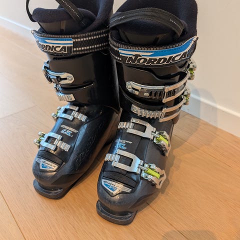 Gode slalåmsko til barna med en spenne, så veldig enkelt for barnet å spenne på seg selv.