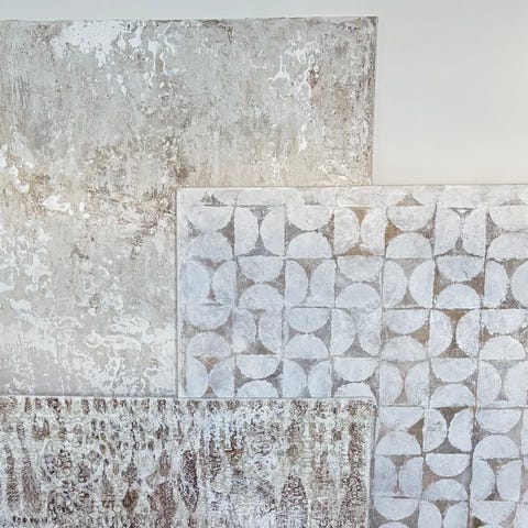Veggbilde med strukturert, ornamentert mønster i beige og brune toner, inspirert av arkitektur og estetikk jeg har sett på reise i Marokko.