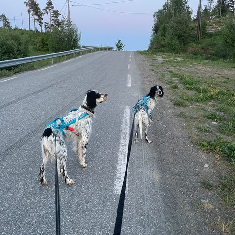 Han er veldig vennlig og sosial. Han går fint sammen med tisper. Vi har lite erfaring med hannhunder. Vi anbefaler ikke hjem med små barn, da han er en stor og følelsesladet hund som kan hoppe i glede og ved et uhell velte et barn.