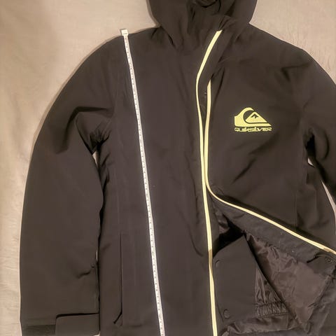 Dette er en vinterjakke for barn fra merket Quiksilver str 12 år. Den har praktiske lummer og snølås.