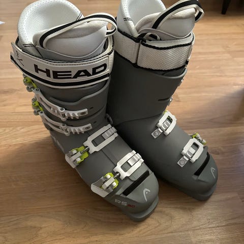 Head alpinstøvler i hvit farge med svarte og gule detaljer. Støvlene har flere justeringsspenner og power strap øverst for bedre tilpasning rundt leggen. Passer til alpintkjøring i bakke. Egnet for bruk med vanlige alpinski og standard bindingssystem for alpinstøvler. Størrelse 303 mm, 26,5 mondo