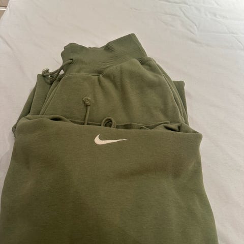 Russedress joggedress for dame i størrelse M. Sett med hettejakke med glidelås og matchende joggebukse. Farge grønn med hvite snorer. Plagget er i bomull, med myk innside kunn prøvd på selger dette da dette ikke passer. Nypris: 1598