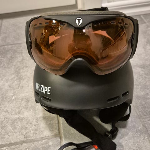 Alpin hjelm 53 -56 cm og briller