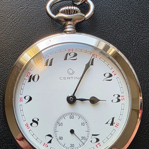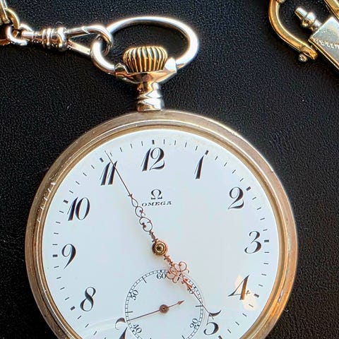 Jeg arvet lommeuret for 30 år siden og vil tippe at det er ca. 50-70 år gammelt.