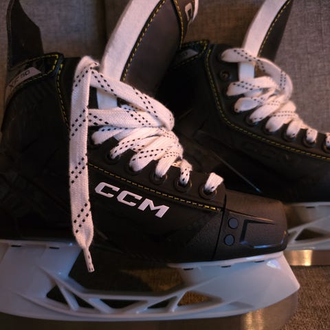 CCM Tacks AS 550 ishockeyskøyter for barn i størrelse 36. Modellen er laget for ishockey og har svart overdel med kontrastdetaljer og hvite lisser. Skøytene har fastmontert skøytestål og støttende ankelparti som gir stabilitet på isen. Passer til barn som trenger ishockeyskøyter i størrelse 36.