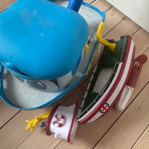 Badeleker selges: båt med fisker og andre små stash som hører til og kan ses på bilde 🎣🐠⚓️🚢