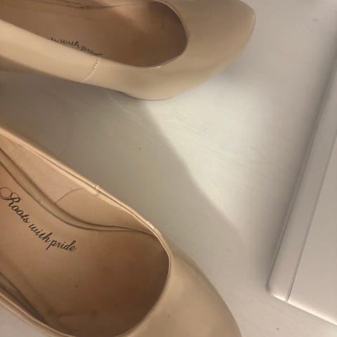 Anna Field pumps hæler i størrelse 38. Skoene er gullfargede med spiss tå og smal hæl. Overdelen er i syntetisk materiale med glatt finish, og innersålen er lett polstret for økt komfort. Passer som pene sko til bruk ved formelle anledninger eller andre situasjoner der man ønsker et mer pyntet uttrykk.