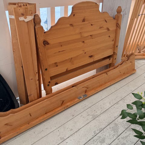 Må delvis demonteres for å få den ut av rommet. Tar du jobben med demontering er sengen din.