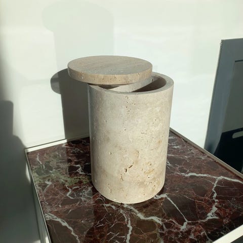 En solid og stilig sylindrisk travertinkrukke som en multifunksjonell oppbevaringsboks