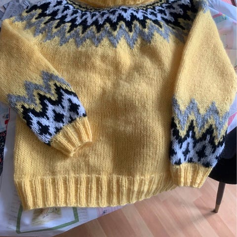Ny pent strikket genser str M strikket i Gjesdal Superwach i garn i fine farger.