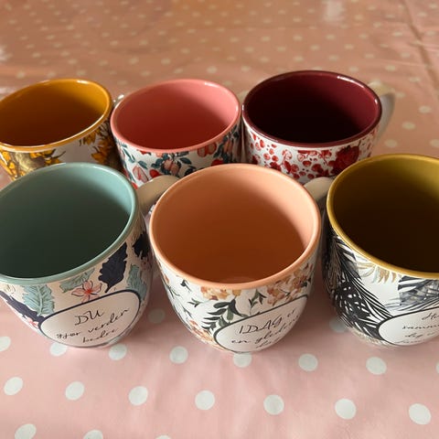 Designtorget servisesett i hvitt porselen med gullkant. Settet består av kopper med hank, asjetter og skåler, samt fløtemugge og sukkerskål med lokk. Serviset har klassisk, hvit glasur med strukturdetaljer og dekorativ gullkant langs kantene. Egnet til servering av kaffe, te og dessert ved borddekking til hverdag og selskap. Passer til deg som ønsker et ensartet servise i lys farge med enkel dekor.
