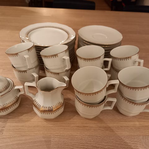 Designtorget servisesett hvit med gullkant porselen