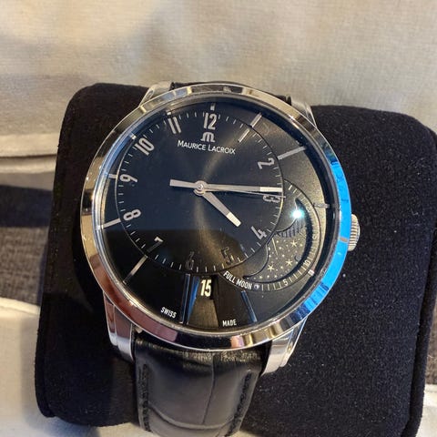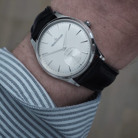 Dette er referanse 140.2.93.S, forgjengeren til dagens utgave i Master Ultra Thin-serien. Den har en tynnere (!) kasse og helt perfekte proposjoner.
