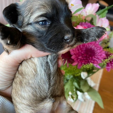 Mor: Blanding av Yorkshire/Terrier og Malteser.