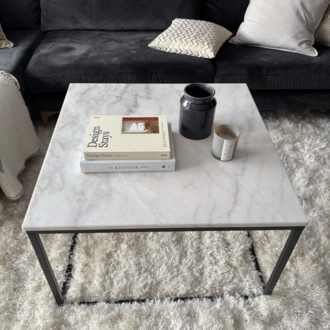 Kjøpt på Jysk i 2019. Det er i god stand, og ingen umiddelbare bruksmerker. Bordets plate har to ulike sider så du kan variere uttrykket på bordet.