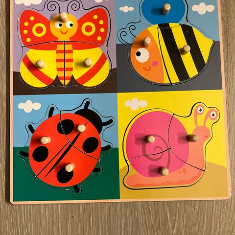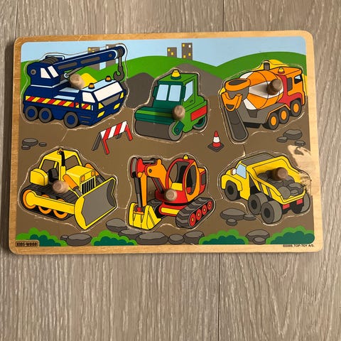 Goki trepuslespill med motiv av traktor i flere farger. Puslespillet er laget i tre og består av brikker med knotter som gjør det enklere for små hender å gripe. Motiv med traktor og fører, med store hjul i blåtoner og rød traktor. Passer som aktivitetsleke for små barn og til trening av finmotorikk og hånd–øye-koordinasjon.