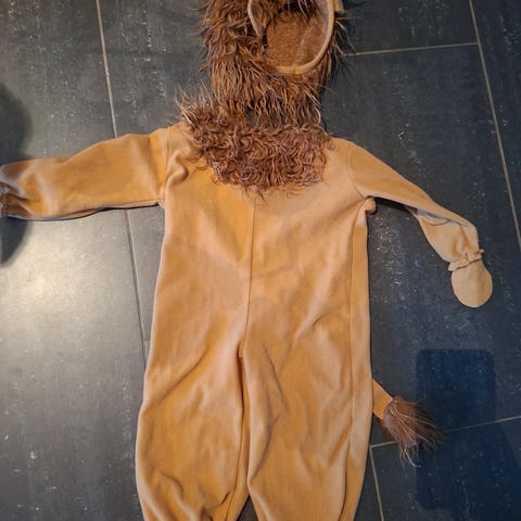Løvekostyme! Perfekt til karneval eller utkledningsfest! Brukt kun to ganger, ingen bruksmerker. Str 74-80.