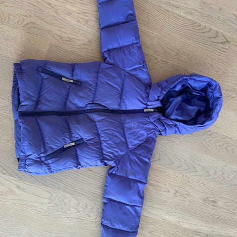 Benetton dunvest for gutt i størrelse 116. Vesten er blå og vattert med dunfyll. Den har hette, glidelåslukking foran og sidelommer. Passer som ytterplagg over genser eller jakke i overgangssesonger eller på kjølige dager.