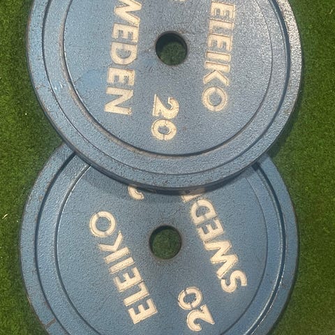 American Barbell olympiske vektskiver "bumper plates" 10 kg.