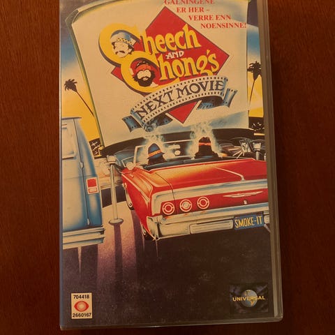 Selger den norske VHS-utgaven av Cheech & Chong’s Next Movie (1980), en klassisk stoner-komedie med Cheech Marin og Tommy Chong.