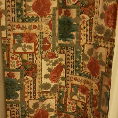 Koselige rutet gardinfag m/kappe. Kappemål, L=325 og H=40. 2stk. bånd. L=80cm og 11cm på det bredeste.