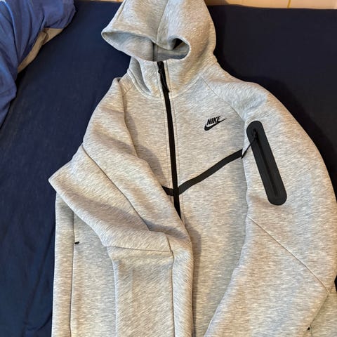 Nike hettejakke for herre i størrelse M. Jakken er svart og laget i polyester. Den har glidelås i front, hette og sidelommer. Diskré Nike-logo på brystet. Passer til hverdagsbruk og lett trening i kjøligere vær. Brukt bare 2 ganger