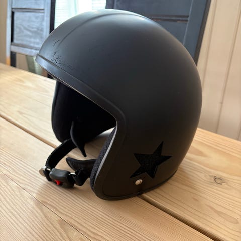 Harley-Davidson åpen MC-hjelm i størrelse M, sammenlignet med hel hjelm tilsvarer den XL. Hjelmen er i matt svart farge og har klart ytre visir som kan vippes opp og ned. Innvendig er det integrert solvisir som kan senkes etter behov. Polstret innside og hakereim med justering og låsespenne. Godt egnet til motorsykkel- og scooterbruk.