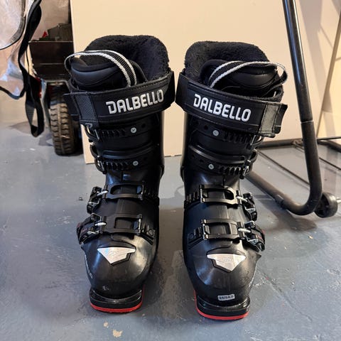 Dalbello Veloce Max 90 alpinstøvler i svart farge. Støvlene har fire justerbare spenner i metall og power strap øverst for bedre tilpasning rundt leggen. Sålen har oransje detaljer, og det følger med utskiftbare såledeler og innleggsåler som vist på bildene. Passer til alpinbruk i preparerte bakker. Støvlene leveres i original eske fra Dalbello.