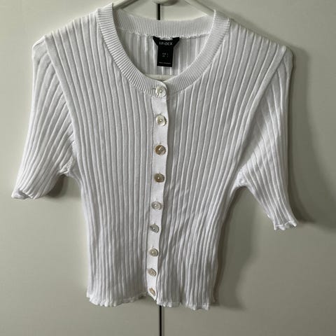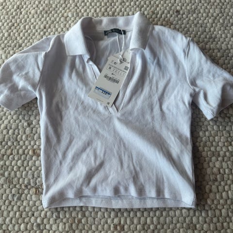 Hvit Ribbet Polo T-Skjorte fra Zara i strl. S.