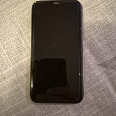 Apple iPhone 11 smarttelefon med 64 GB lagringsplass i hvit farge. Skjermbeskytter falt av for noen måneder siden, noe riper i skjerm. Også et hakk på toppen, høyre side (se bilde)