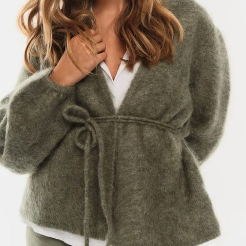 En tykk, chunky lys gul cardigan med justerbart knytebelte i midjen. Feminin, avslappet passform med voluminøse ermer. Et superanvendelig plagg, bruk den til jeans hverdags og til et pent skjørt til selskapligheter!