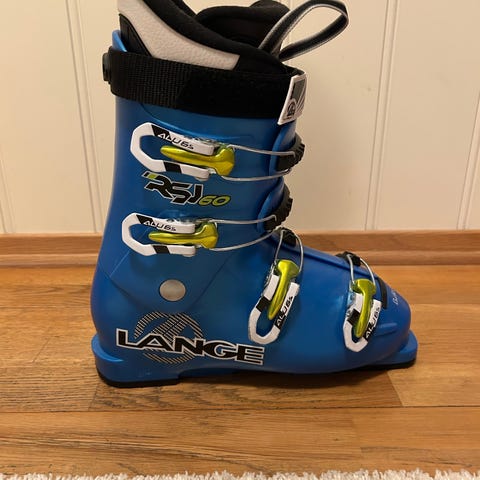 Lange RSJ 60 alpinstøvler for barn i Mondopoint-størrelse 22.5. Støvlene er i blå plast med fire aluminium-spenner (ALU6s) og for god tilpasning. ISO 5355-såle som passer til vanlige alpinbindinger. Innvendig støvel er varm og godt polstret skaftkant for komfort. Se bilder. Hentes her i Asker.