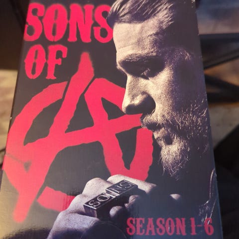 Sons of Anarchy komplett serie DVD-boks med sesong 1–7. Boksen inneholder alle episodene fra TV-serien fordelt på flere DVD-plater.