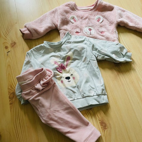 Noen gensere er nye, dongeri bukse fra HM blant annet. Fine kler, noen plagg er mer brukt. (Ene genser har ett merke - se bilde)