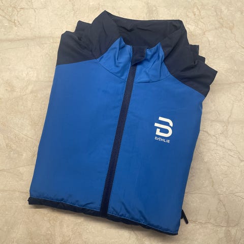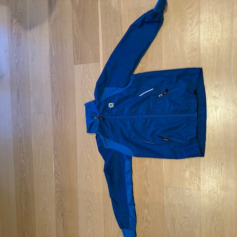 Dæhlie langrennsjakke er i vind- og vannavvisende softshell med stretchpanel i ryggen for god bevegelighet og ventilasjon og passer til både tur og trening. Har to små merker øverst på høyre side ved brystet. Ny pris 999 kr. Selges for 400 kr.