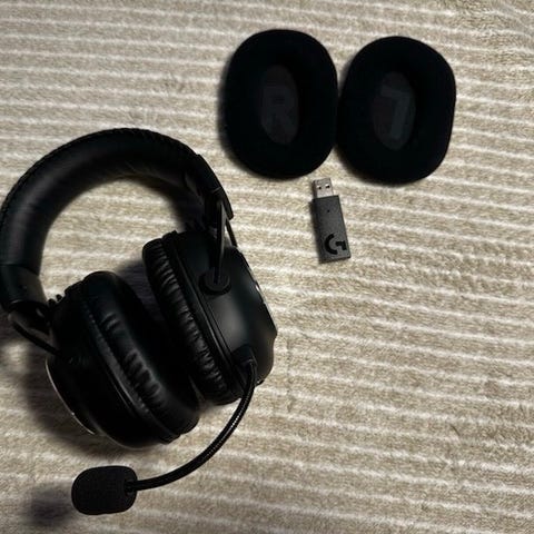 Logitech trådløst headset i svart med gule detaljer. Hodebøylen er polstret, og øreklokkene har myke puter i tekstilmateriale. Headsettet har innebygde knapper på ørekoppen for volum og styring, samt USB-C-port for lading. Det følger med en trådløs USB-mottaker for tilkobling til kompatible enheter som PC eller andre enheter med USB-port. Egnet til bruk foran PC, spilling, musikk og tale. Passer for voksne og ungdom. Funker også for Tlf gjennom Bluetooth