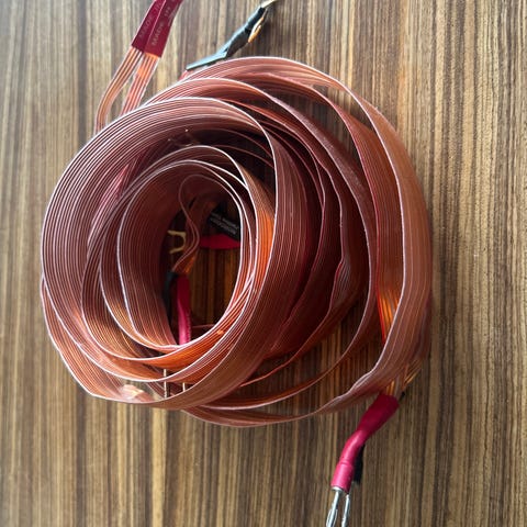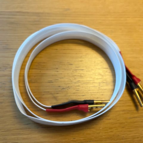 2 stk høyttalerkabel på ca 2m lengde. Nøyaktige mål og flere bilder fikser jeg ved interesse. Noe slitt på enkelte krympestrømper