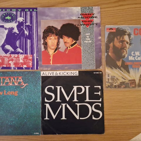 Selger disse 6 singlene samlet. Noe slitte covere, se bilder. Alle spiller uten hakk