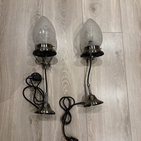 Selger 2 vegglamper da vi har kjøpt oss nye . Det er sort smijern og glassene er med spill " se bilde" .