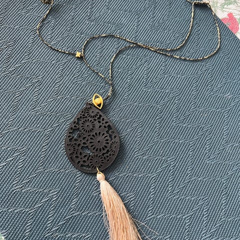 Sølvkjede med mange rader, tilpassende anheng . Radene er forskjellige farger - mørkere og lysere sølv