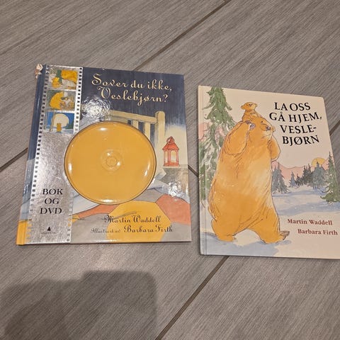 Pakke med ulike barnebøker og bildebøker for småbarn. Bøkene har hard perm og er i ulike farger og formater. Innholdet spenner fra enkle fortellinger til høytlesningsbøker for barn. Egner seg til lesing for førskolebarn og tidlig skolealder. Selges samlet som vist på bildene.