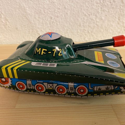 Stikkord: blikkleketøy, tank, MS 8001, opptrekksleke, vintage, retro, samlerobjekt, Vest-Tyskland, 1950-tall, gnistleke