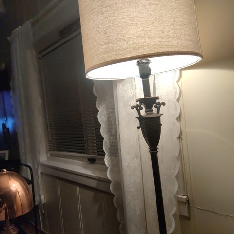200,- for den med hel skjerm og 150,- for den hvor skjermen har en liten skade. Evt. samlet for 300,-. Pærer medfølger