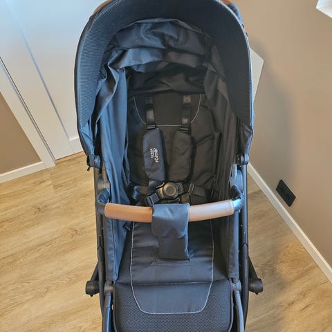 Britax barnevogn 5z i svart farge. Vognen har liggedel, justerbart håndtak og varekurv under setet. Den har fire hjul med svingbare forhjul for enklere manøvrering.