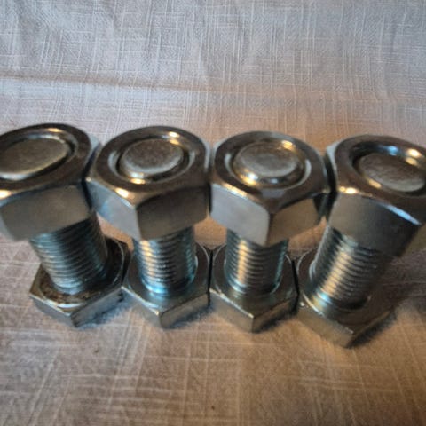 Selges for kr 20 pr stk. Har ca 500 stk helgjenget bolt med mutter og skive 24 x80