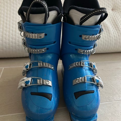 skistøvler for barn i størrelse 19,5., tilsvarer ca str 30. Modellen er i rød farge med svart og grå innersko. Støvlene har justerbar spenne over vristen for bedre tilpasning og støtte. Myk, polstret innersko gir komfort og varme. Egnet til alpint bruk for barn som trenger stabile og enkle skistøvler.