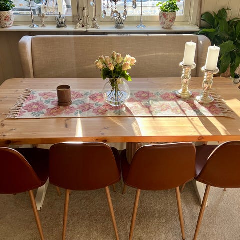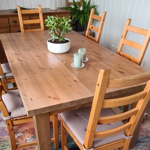 Har fire stykker, selges samlet. Særdeles lite brukt. Kr. 300,-pr. stykk. Selges nå hos Jysk for kr. 900,- for to. Kjøp disse av meg og spar kr 600,-. totalt. Gode stoler, men passer dessverre ikke inn i helheten av min stue. Må hentes Auli