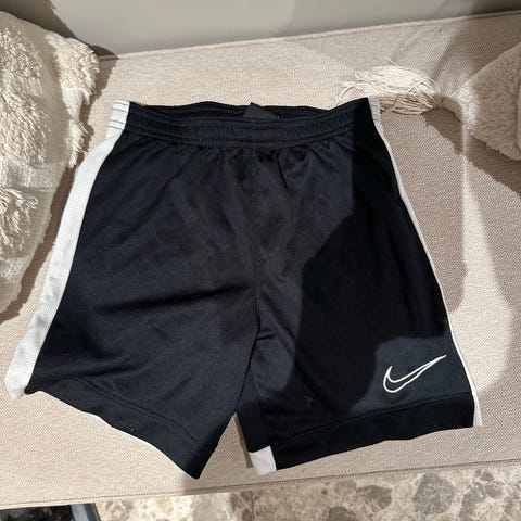 Nike Dri-Fit fotballdraktsett består av kortermet trøye og shorts i svart med lyse sidepaneler. Egnet til fotball og annen fysisk aktivitet for barn rundt 137–147 cm høyde.
